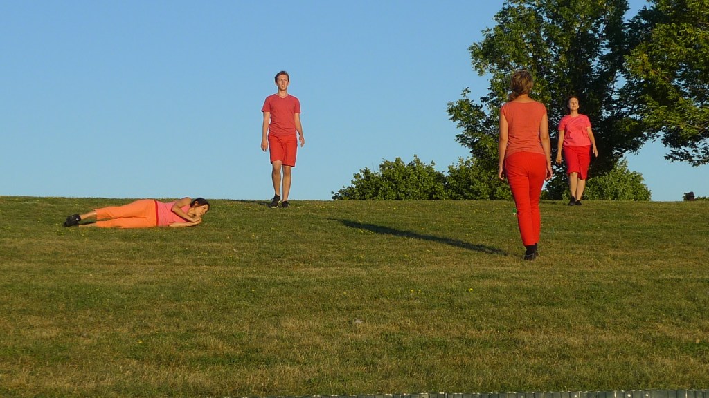 Piece Description: ‘Big Hill’ is a dance work for five dancers that uses the natural incline of a hill as its stage. Mountain (or in this case a hill) is a universal metaphor for the action of striving. The dancers embody the emotional and human experience of striving through the physical trajectory of travelling up and down the hill.